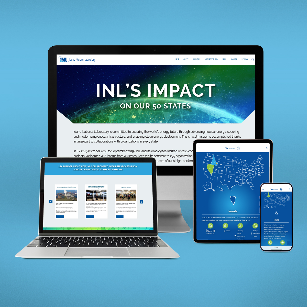 RED Inc. was tasked to create an infographic-style website to display the Idaho National Laboratory’s impact across states nationwide. This site organizes large amounts of information in a graphically pleasing way, while aligning with the lab’s brand standards.