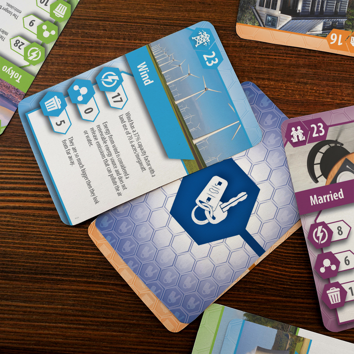 We worked with STEM Special Forces to develop an instructional card game for young children. Playing the card game educates youth on the global impacts of electricity usage, and the effects of everyday choices.